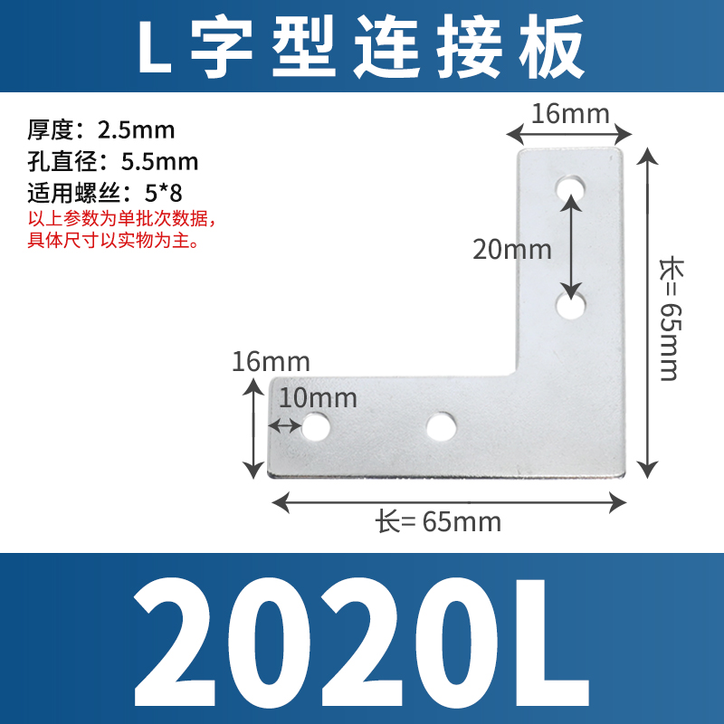 品名:T-L连接板/一字连接板/十字连接板分类:铝型材配件材质:碳钢表面镀铬产地:中国——江苏——苏州用途:工业自动化规格:2020型-8080型全系列规格订购热线苏州虎丘公司电话:0512—68236489昆山工厂电话:13915481080 13962693860